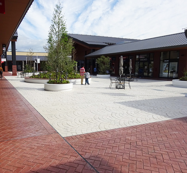 コンクリートの持つ経済性と堅牢性はそのままに、デザイン性を付与することができ、豊富なカラーとデザインパターンの組み合わせにより街並みと調和。