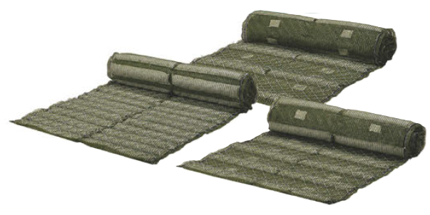 ポリエチレンネットと菱型金網を合わせた植生資材 菱型金網とポリエチレンネットの一体化によって、法面の表層滑落を防止する製品。