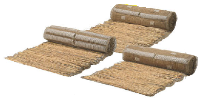 ワラゴモ・有機植物ネット・亀甲金網を組み合わせた植生資材 生分解性素材を活用しているため、環境に優しい製品である。