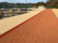 二液反応型エポキシ樹脂を用いた樹脂モルタルカラー舗装。可撓性の高いエポキシ樹脂を用いることでコ...