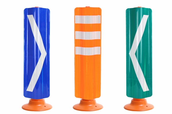 施工が簡易で工具が不要なことから工期短縮が可能。製品の反射シートは既設品の約2倍の面積に拡大、さらに超高輝度反射シートを採用し視認性が向上。また、表面はセルフクリーニングを施し汚れが付き難く反射性能維持期間を延長させている。
