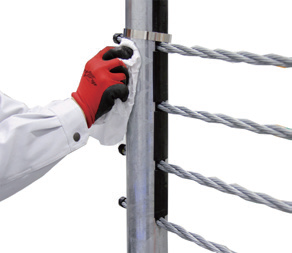 ・ステンレスストラップに干渉せず、ワイヤロープの衝撃吸収機能を阻害しない設計