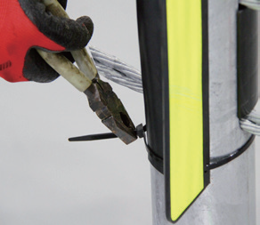 付属の結束バンドを本体下部の穴に通し結束させ、ニッパーで結束バンドのあまり部分を切り落とす。