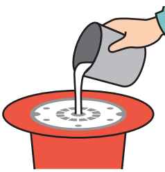 ガードコーンの接着面にある溝部にも、混合済み接着剤を溝からあふれ出るまで流し込む。