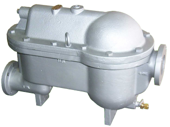 蒸気配管などで発生するドレン(復水)を自動的に排出するフロート式スチームトラップ。熱交換器、乾燥機及びヘッダなどドレンが多量に発生する場所に使用。このトラップは構造がシンプルなレバーフロート式。