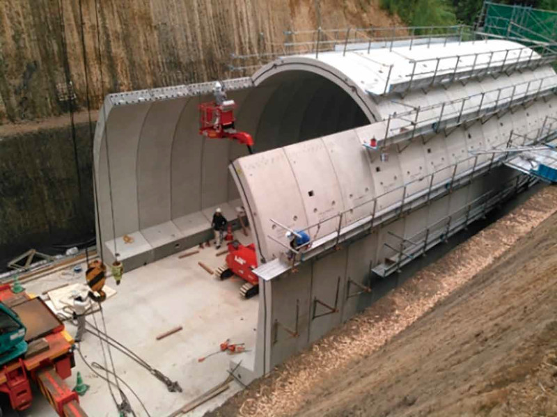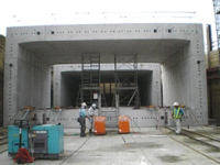 工場で製造された部材を現場に搬入し、組み立てて構造物を構築するため、現場工期の短縮を図ることができる。