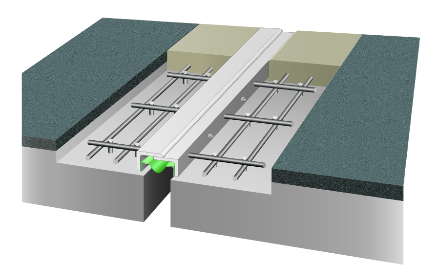 - 伸縮装置本体の異形棒鋼スタッドとアンカーを介して床版と一体化することで損傷リスクを低減している。排水機能付き構造により、雨水の浸入を防ぎ、床版の劣化を抑制することで、長期にわたり安定した性能を維持できる構造である。