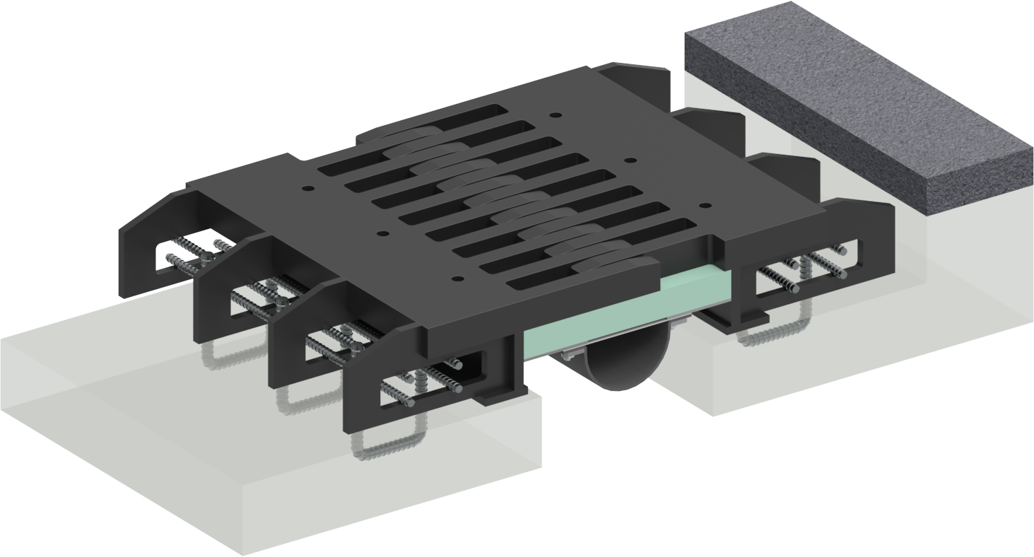- 床版に設けたアンカー筋への締着後、コンクリートを打設するだけのシンプルな施工により完結するため施工性に優れる。