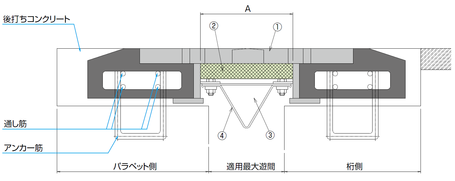- 大遊間橋梁に対応した大型鋼製伸縮継手である。