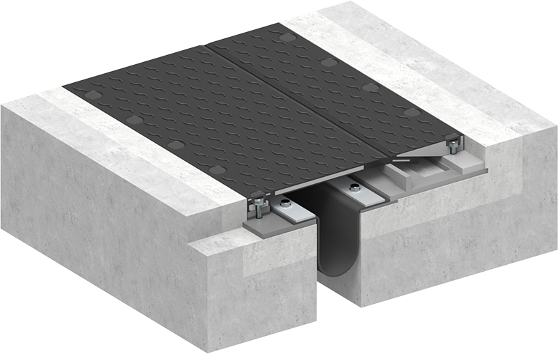 - 表面に溝を作らず、スムーズな方向性、目地、目地直角、鉛直方向の移動が可能な伸縮継手である。