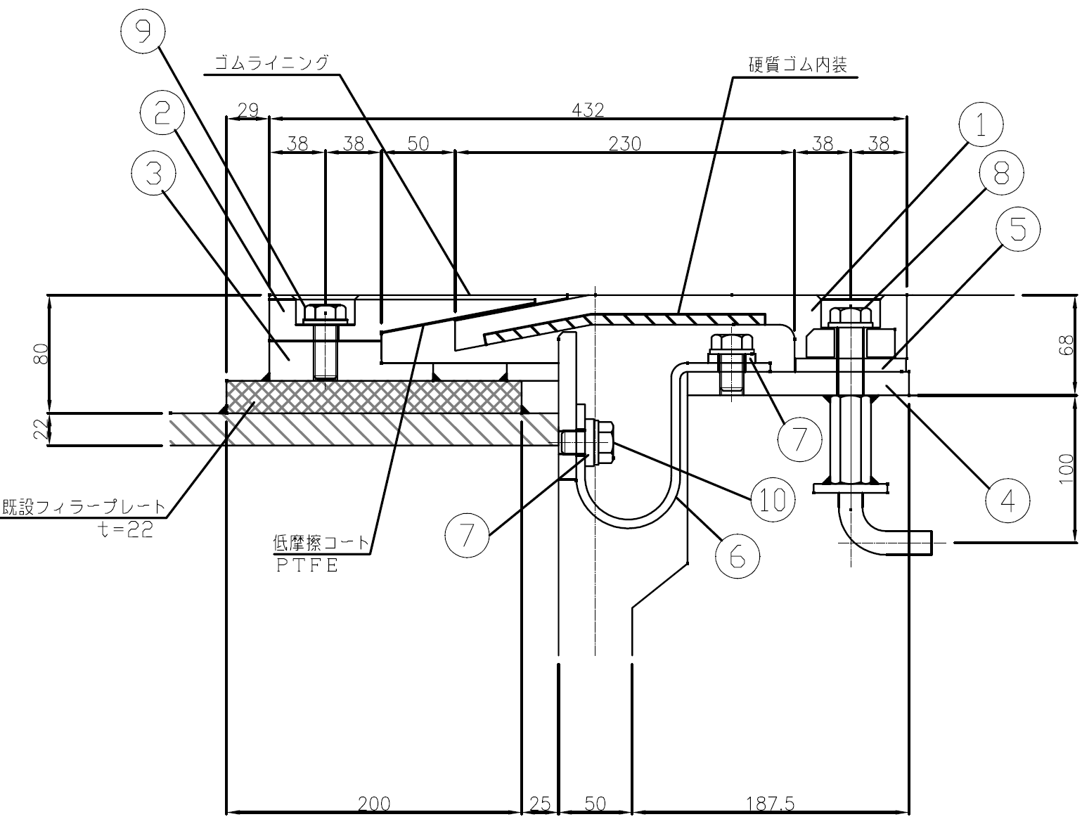 - 伸縮ゴム材のみの交換は可能であり、締結ボルトの脱着のみで作業は容易である。