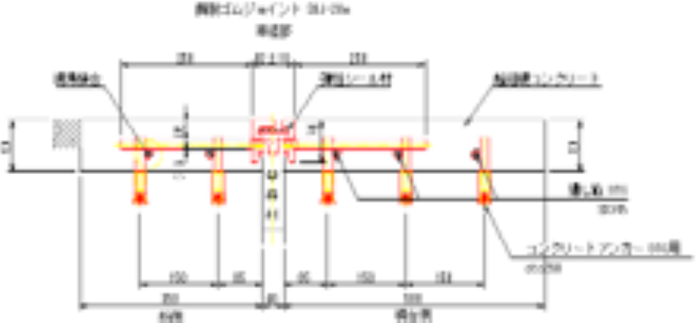 - 荷重支持型で、伸縮構造部はゴム性である。装置の定着は床版埋め込み鉄筋と装置本体アンカーバーを定着し、コンクリート内部に埋め込む方式である。