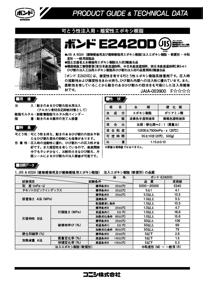 JIS A 6024〈建築補修用及び建築補強用エポキシ樹脂〉注入エポキシ樹脂 ― 軟質形 ― 中粘