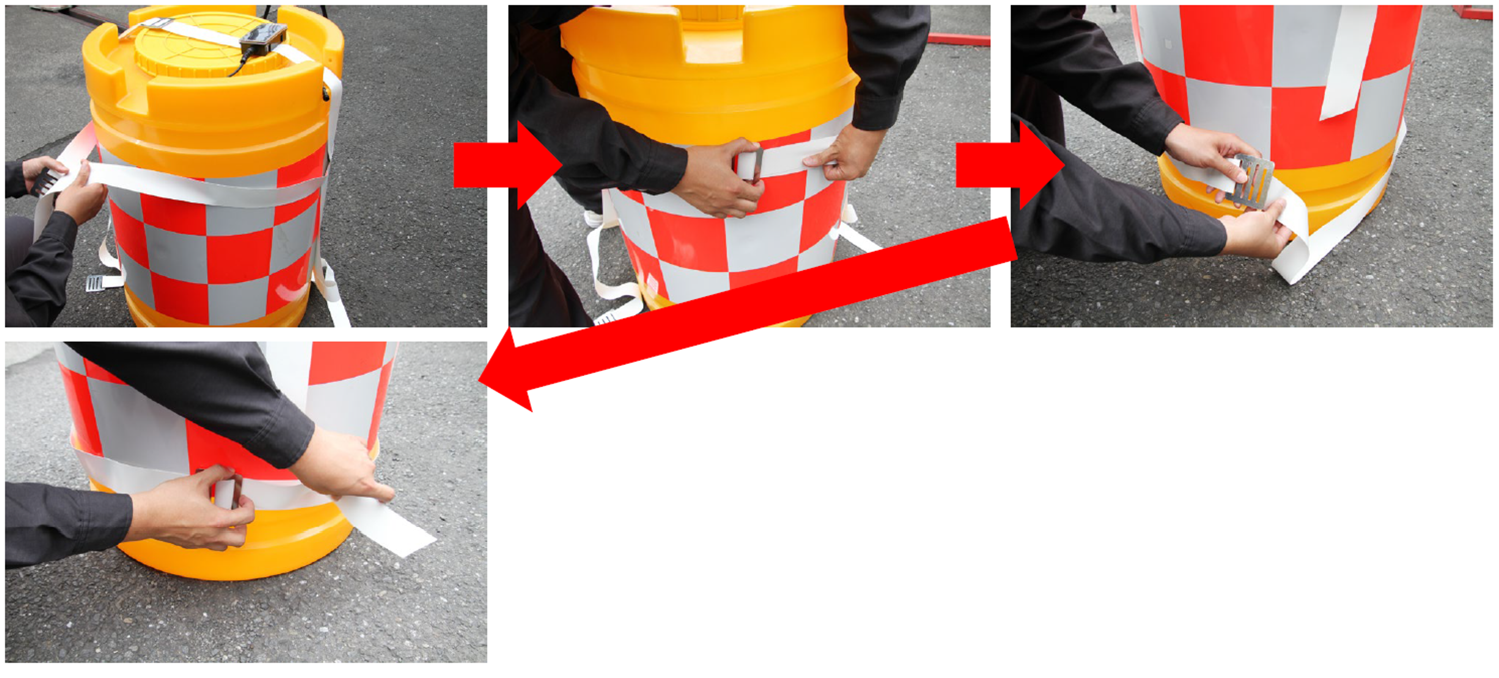 発光確認ができたら、上部・背面の各ベルトの本締めを行う。