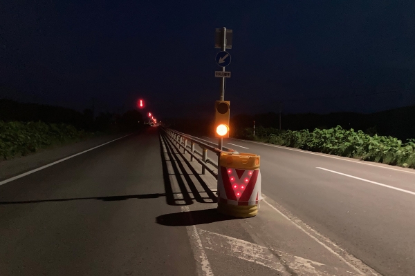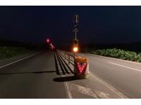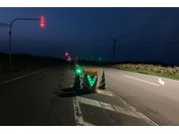 電源コネクタが接続出来たら、発光確認を行う。側面の電源スイッチを押してから、ソーラー部を手や黒い布など光を遮断できるもので覆う。接続および電源に異常がなければ、数秒後にLEDの発光が開始になる。