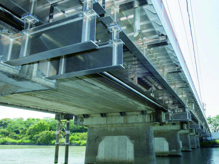 軽量なアルミ床版により既設構造物への負担が軽減されるため、下部工を補強・新設することなく添架できる。