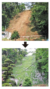 特殊配合モルタル吹付工Bでは、施工困難な斜面の防災に摘要