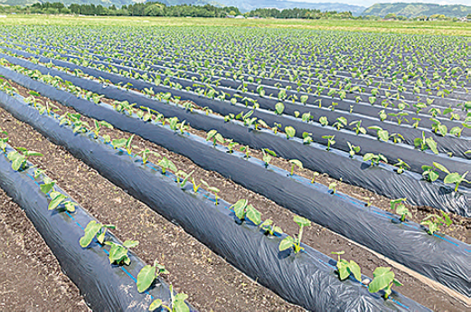 2. 作物収穫後、そのまま土に鋤き込めるためはぎ取りの手間がなく、省力化が図れる。