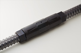 あらゆる異形鉄筋を接合することができるモルタル充填式継手。従来型に比べ約15%のスリム化を図り...