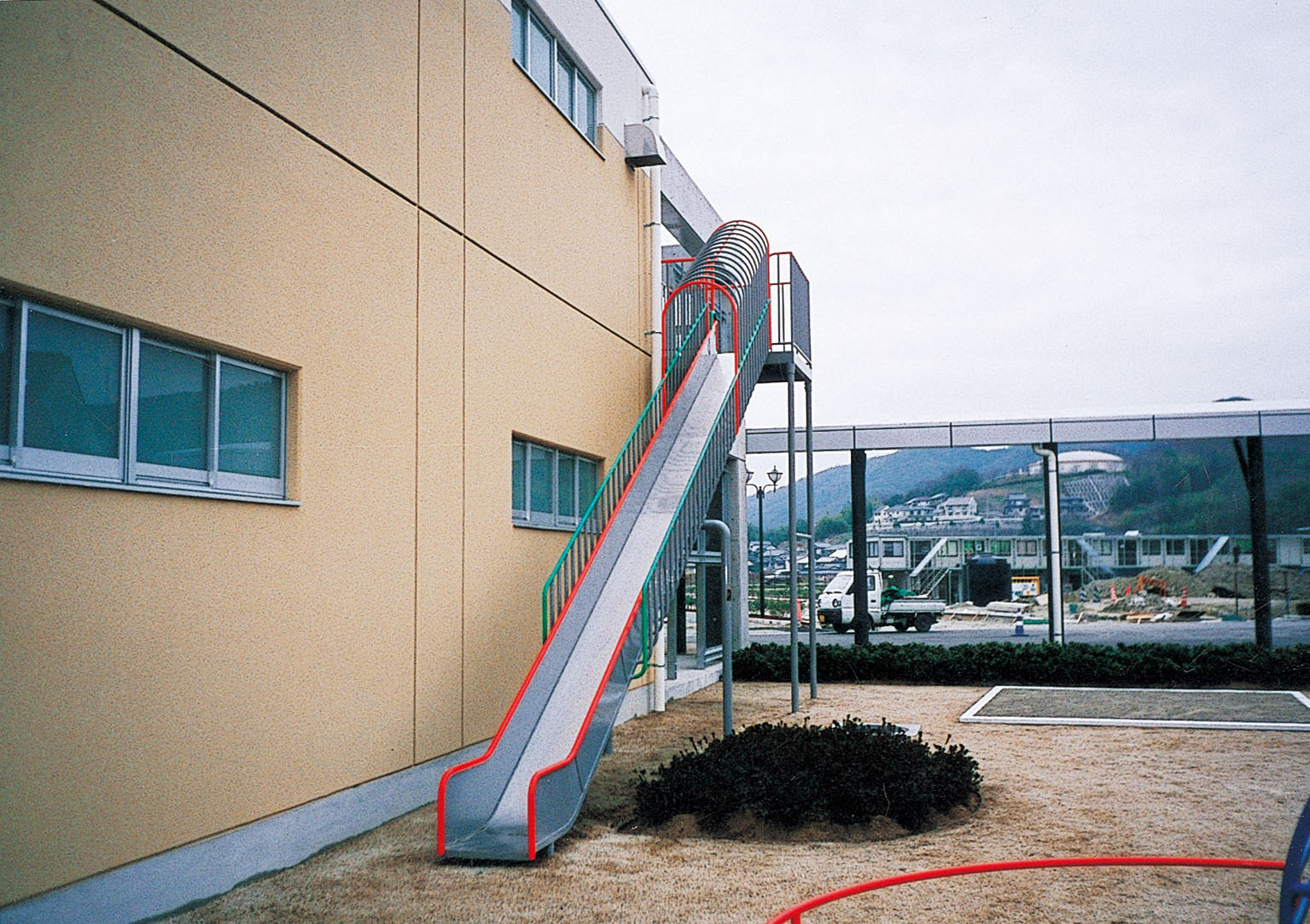 災害時のスムーズな階段避難や転倒事故の軽減のため設計されている。