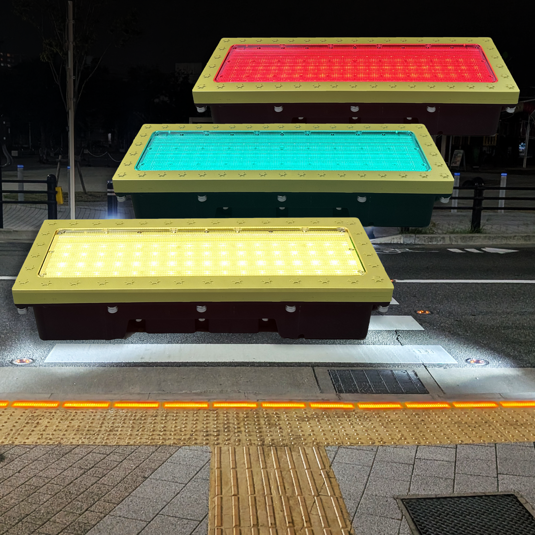 LEDの直進光を低減し、歩行者の視認性および安全性に配慮した発光設計