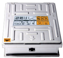 避難ハッチは一般に本体(中枠)、上ぶた、下ぶた及び取付金具等で構成されるものであることとされている。※上ぶたの上に物を置いたり、乗ったりしないことが重要。