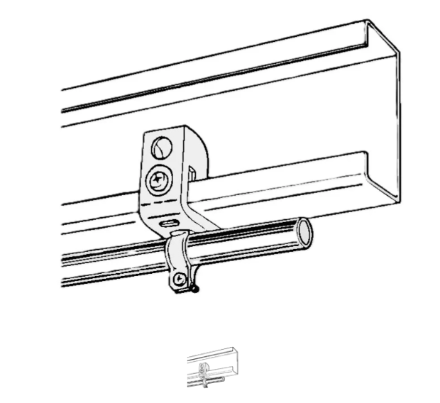リップみぞ形鋼用に寸切ボルト(W3/8)を吊り下げる金具。