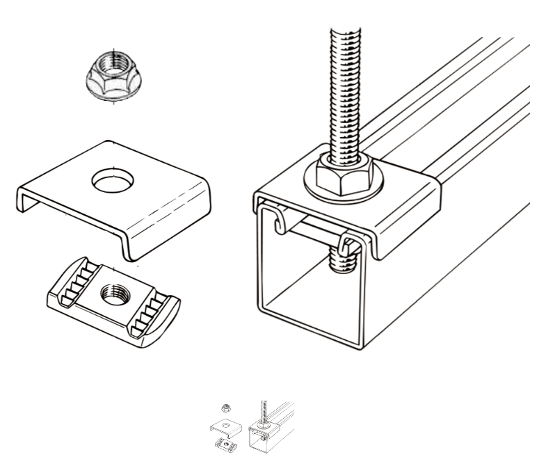 PST吊り金具はPSプレートとPSナットでパイプ ハンガーを吊りボルトに支持する金具。