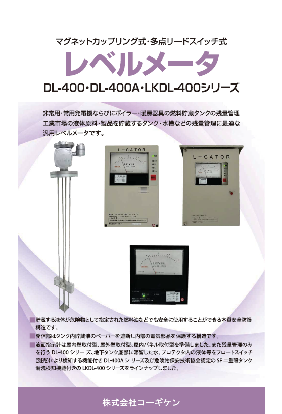 暖房・自家用発電機の燃料供給用サービスタンクを始め、水・溶剤などを貯蔵する中小タンクの残量測定...