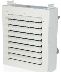 ユニットヒータは、蒸気または温水を熱源とし、コイルで暖めた空気を効率の高い有圧プロペラファンによって下方向、または横方向に送風することで、居住域の暖房を行う装置である。 工場・倉庫・体育館・展示場などの居住域用暖房装置として幅広く利用可能。