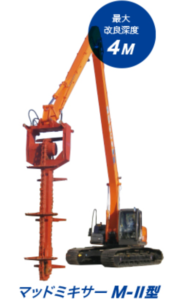 4mまで1層混合処理により、作業工程が軽減 (仮設工事・1次掘削など)。