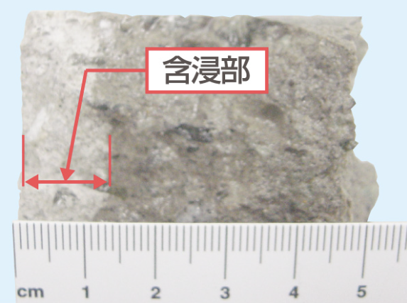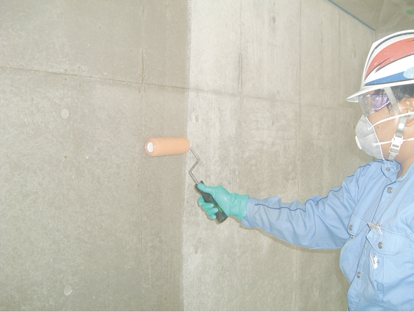 中性化の進行した既設コンクリート構造物に適用する表面保護材。2液混合型のけい酸塩系表面含浸材で...