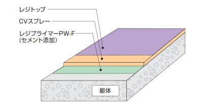 使用する被覆材は、10秒から20秒でゲル化し硬化するため、吹付け後の垂れ落ちを防止でき、数分で作業上の歩行が可能となる。また、被覆材の施工には自動監視された2液混合型機械化システムを使用することで、物性の品質を確保し、スプレー状で連続的に吹付け成膜する。このため、既設構造物における平面以外の立面、天井面のような複雑な部位でも垂れ落ちせず、継目の無く、均質な塗膜が形成できる。さらに8㎜のひび割れ幅にも追従。このため、塩害・水密性(防水性)及びアルカリ骨材反応等の対策を施すコンクリート部材のひび割れに対して追従でき、被覆性能に優れる。必要に応じて、使用する顔料やトップコートにて希望する色に調合が可能であり、景観対策にも使用できる。