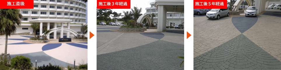 無垢のアスファルトよりも大幅に寿命が延長。 経年変化に強く、美しい景観が長続きする。