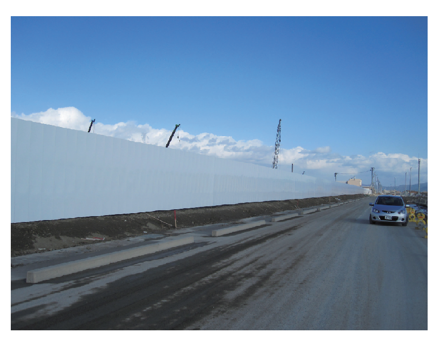 工事用フェンスや鋼板などによって現場を囲い、第三者の安全を確保。材質は亜鉛メッキ鋼板を使用したものが主流であるが、現場のイメージアップを目的とした製品や透明素材の製品もある。