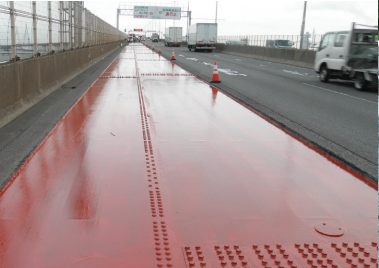 研掃後の鋼床版に塗布するエポキシ樹脂プライマー。 研掃後の鋼床版に塗布することにより、鋼床版を錆から守る。塗膜強度は強く、且つ、下地へ強固に接着する。また靭性に富んでいるために鋼床版に追従する。コンクリート用接着剤「ニッシンボンド」と同系統の樹脂であるため、重ね塗りした際の送還接着も良好で安定している。