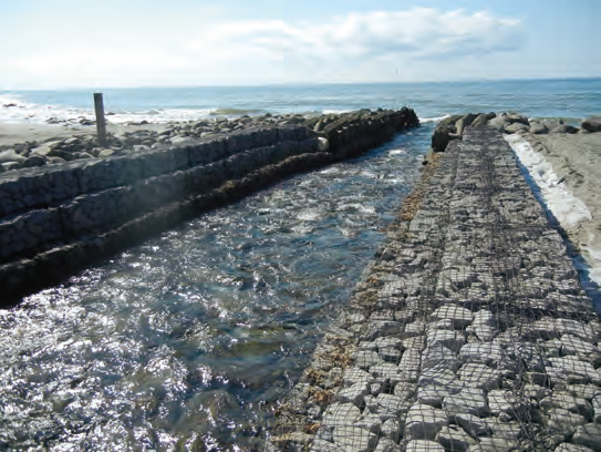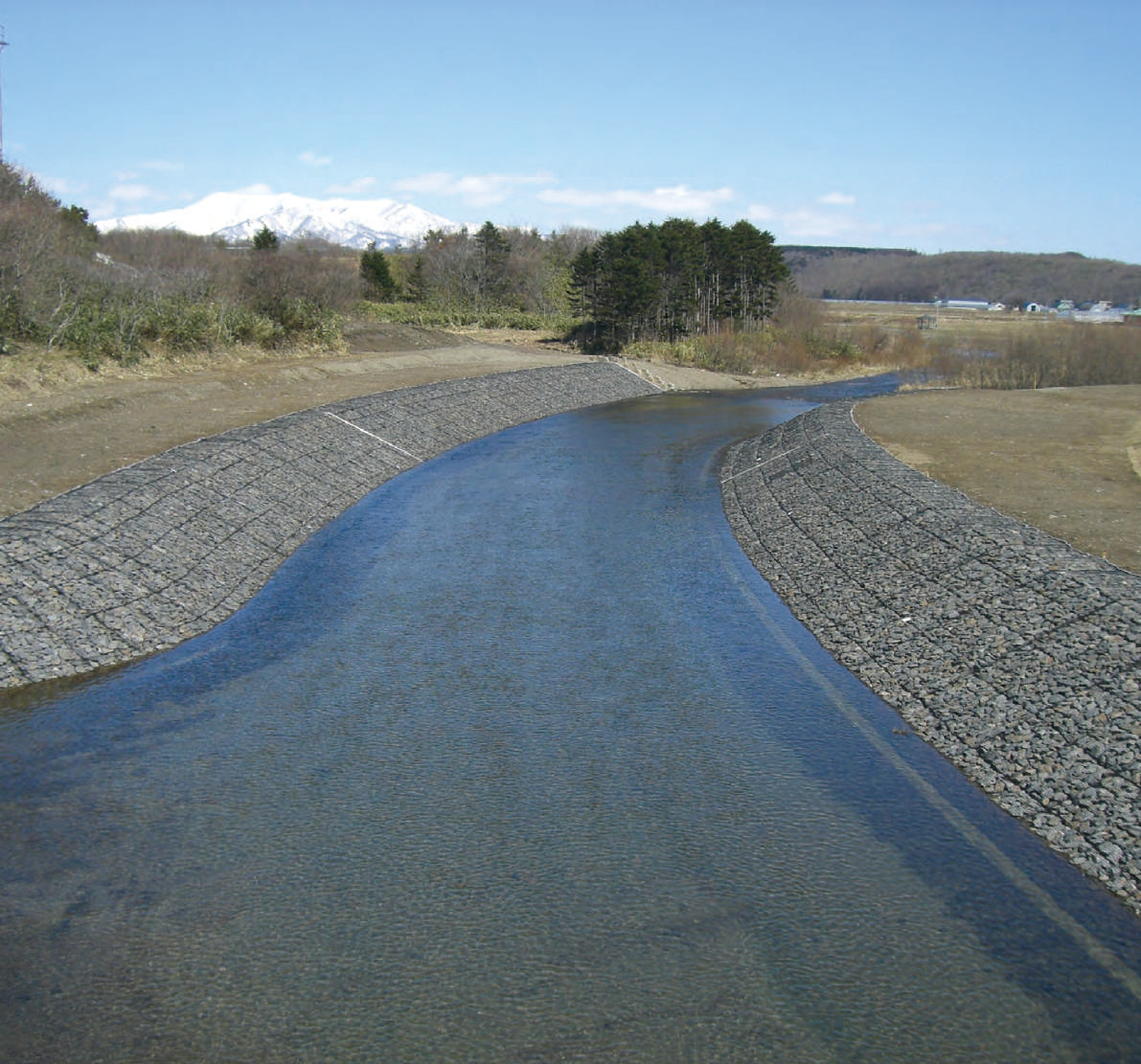 従来の鉄線籠型護岸の線材に要求されている性能に対して、特殊繊維素材として同等の試験を行い確認している。