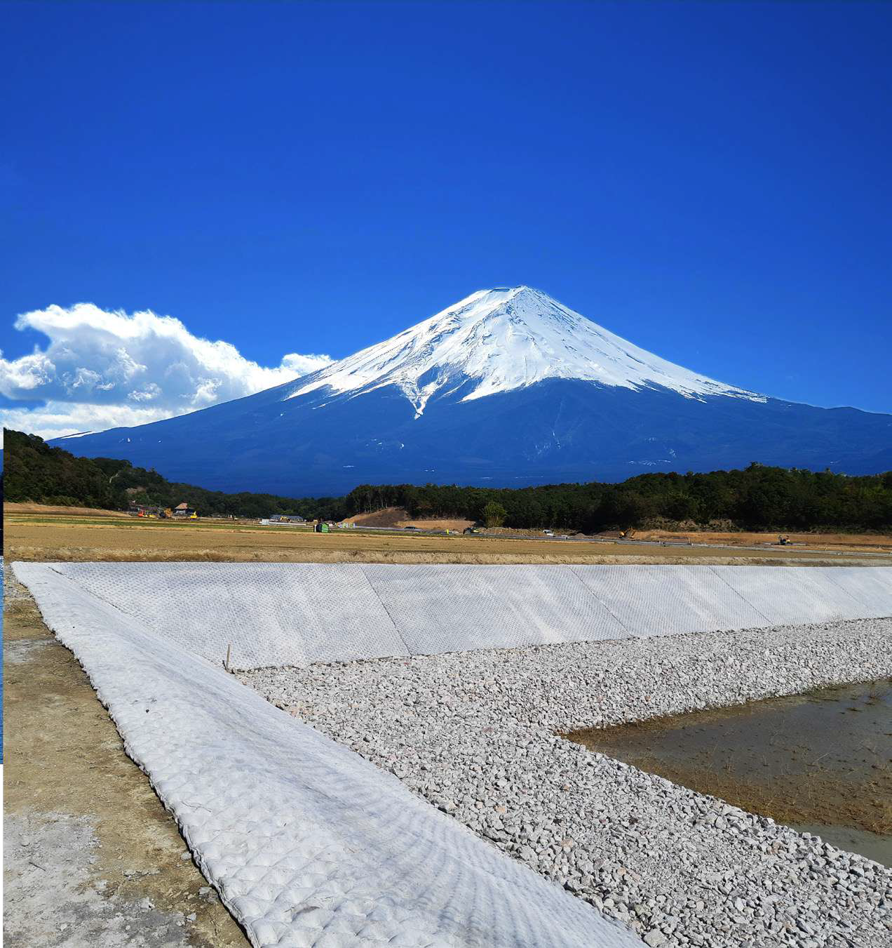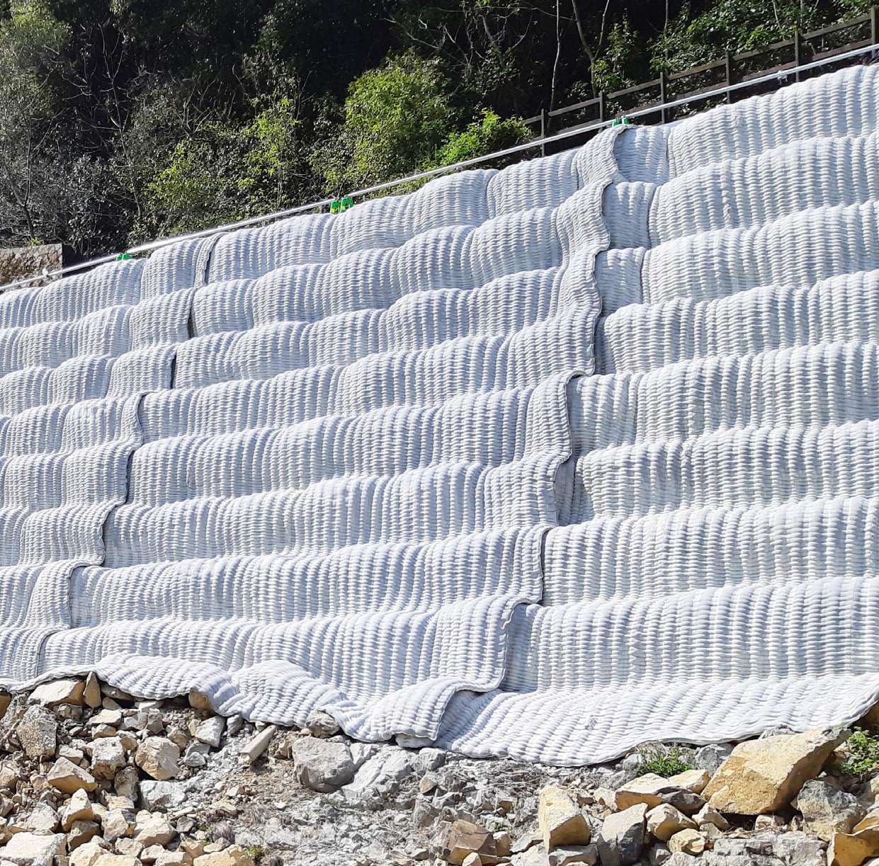 ・ 施工前に現地に適したサイズで布製型枠を工場で製作するため、広範囲の面積の施工が可能。