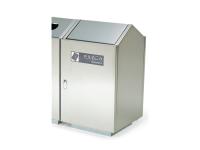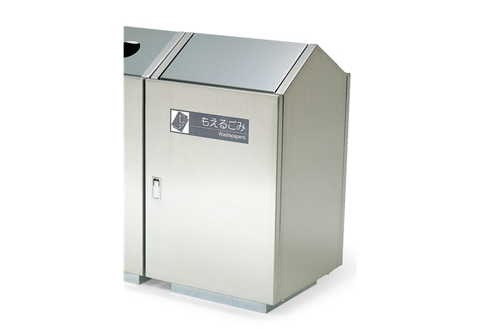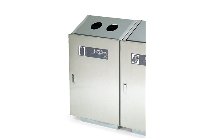 どんな場所にも調和しやすいデザインの屑入れ。分別用サインでより使いやすくなる。