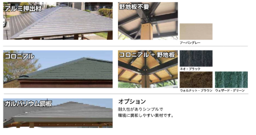 東屋1型(六角形タイプ) 東屋3型(四角形タイプ) 寄棟東屋(寄棟屋根タイプ)...