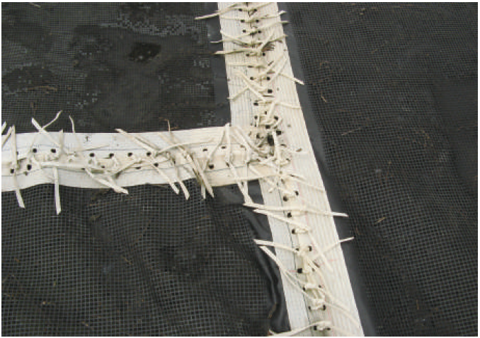 網目構造により土の透水性・通気性を損なうことなく、さらにシートに排水材をあらかじめ取りつけて