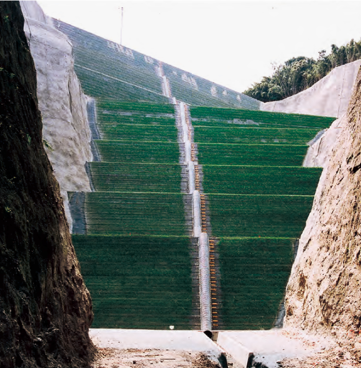コスモグリッド®は補強土工法用ジオグリッドで、高強度・低伸度のポリエステル繊維を使用した織編組織の格子状製品である。表面にアクリル樹脂をコーティングすることにより、耐候性に優れたものにしている。