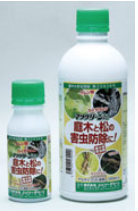 低薬量でマツノマダラカミキリ成虫に優れた効果。 1.新しい効き目でマツノマダラカミキリ成虫と樹木害虫に優れた効果。 2.新枝への浸達性があり、耐雨性にも優れる。 3.人や環境に悪影響が少ない。 4.臭いや汚れがほとんどない。 5.薬液の調整が容易。 6.環境中への残留が少ない。 7.有用昆虫・天敵ダニや鳥類への安全性が高い。 8.周辺作物に薬害の心配が殆どない。