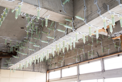 注入位置に穴をあけ、空気を抜き取る作用を持つ注入器(IPHカプセル)を使用し注入することで、コンクリート内部に存在する空気を樹脂に置き換えることができる。