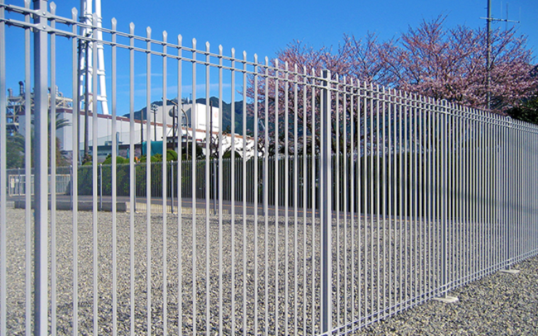 角パイプの格子がピケットフェンスの高級感をより一層高める。