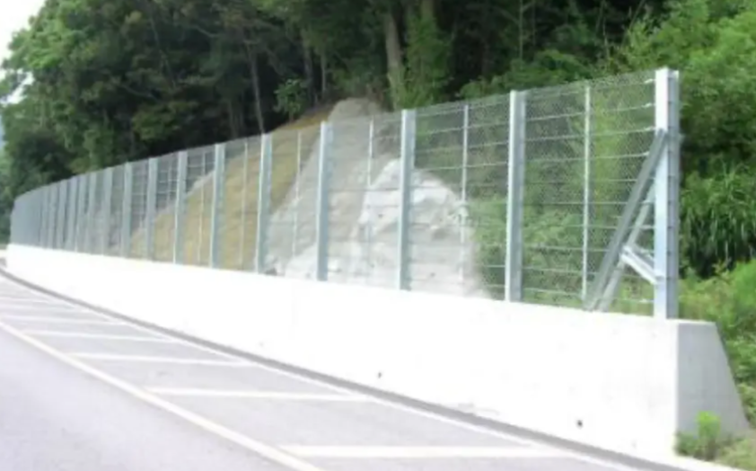 柔軟なワイヤロープと鋼製支柱により落石エネルギーを効率よく吸収する。...